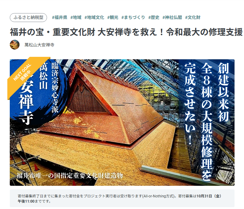 さて、お寺つながりで同郷福井県、越前市味真野では『ふるさとの記憶にもう一度あかりを灯したい』と同じくクラウドファンディングに挑戦されている方々がいらっしゃいます。