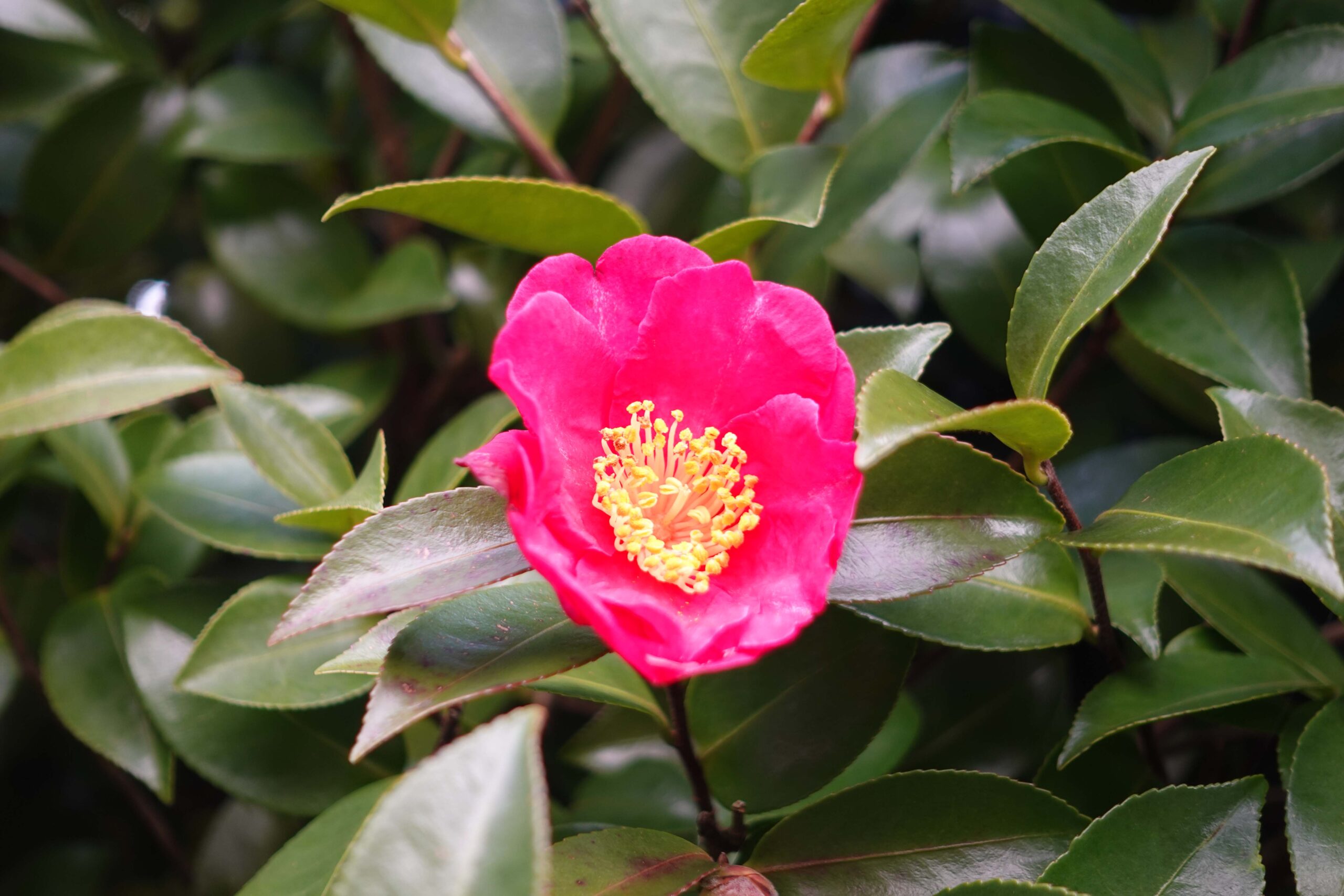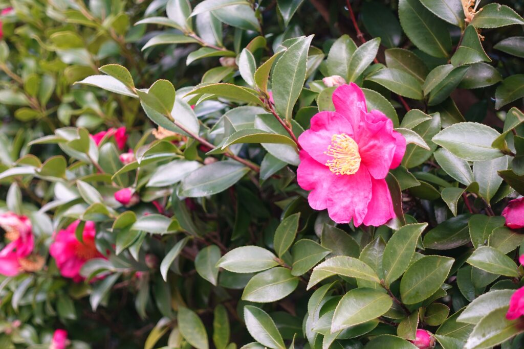 境内に色づく椿