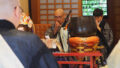 明日の彼岸会・放生会に向けて 日誌OLYMPUS DIGITAL CAMERA 2025.09.22 餅をつく 今朝は急に冷え込み、ようやく秋の訪れを本格的に身に感じて参りました。そして明日はお彼岸でございます。明日9月23日(火)は大安禅寺で彼岸会・放生会を執り行います。そのため、本日は朝からお供えのための餅つきを行いました。 白と緑、二色のお餅を蒸し・捏ね・丸餅に整えます。いくつものお餅を一つ一つ手作りで丁寧に仕上げ、餅つきは昼過ぎまで行われました。明日の彼岸会・放生会では、ご来山頂きました皆様に大安禅寺で仕上げた二色のお餅をお配りします。 その他、お堂の準備も着々と仕上がり、いよいよ明日を待つばかりです。明日も秋らしい気候の予報ですが、まだ残暑も残っている時間帯もあります。ご来山の方はご自身の体調に合わせ、過ごしやすい格好でどうぞお越しださいませ。職員(小澤)
