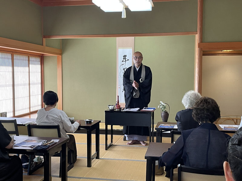 写経の後は、お抹茶と季節の主菓子を楽しみながら法話の時間となります。