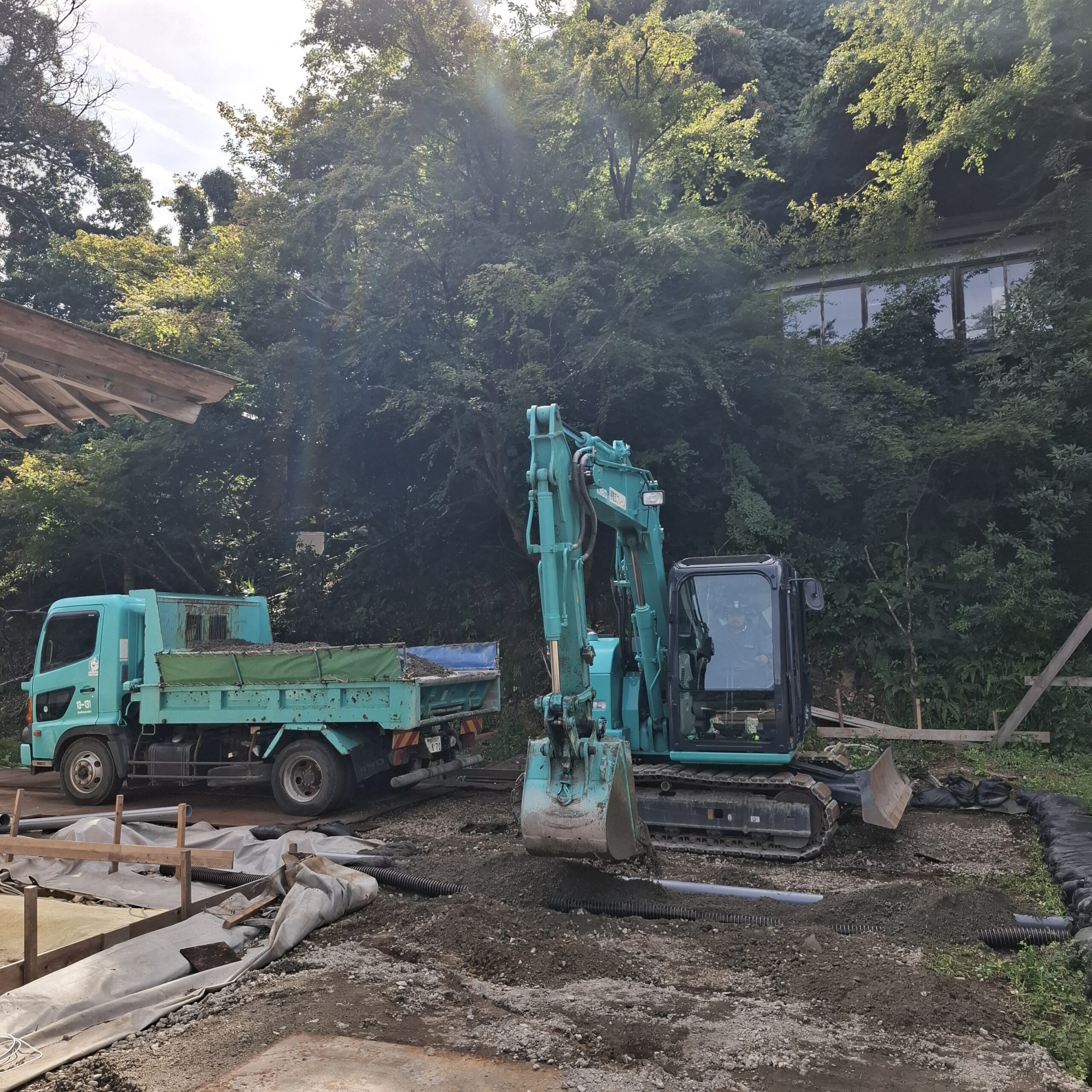 昨日より、本堂の濡れ縁に据える束石の設置が始まりました。庫裡工事に関しては、素屋根足場の基壇造成に取りかかっています。庫裡まわりには土嚢と砂利で盛り土をし、その上に鉄板を敷き詰めていく作業です。