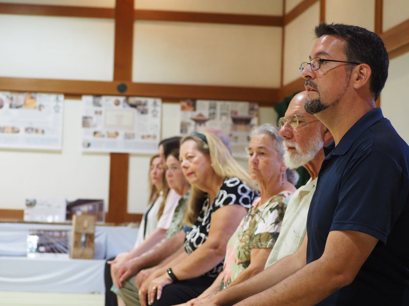最後には、皆様の平和と健康を御祈願する読経をおささげし、あわせて焼香の体験もしていただきました。初めての所作に興味を持たれる方も多く、心静かに祈りのひとときを味わっておられました。