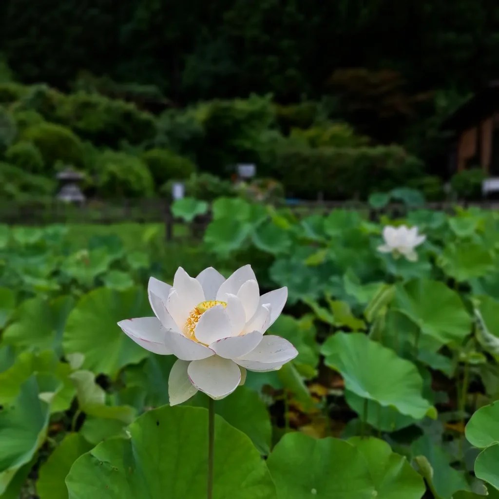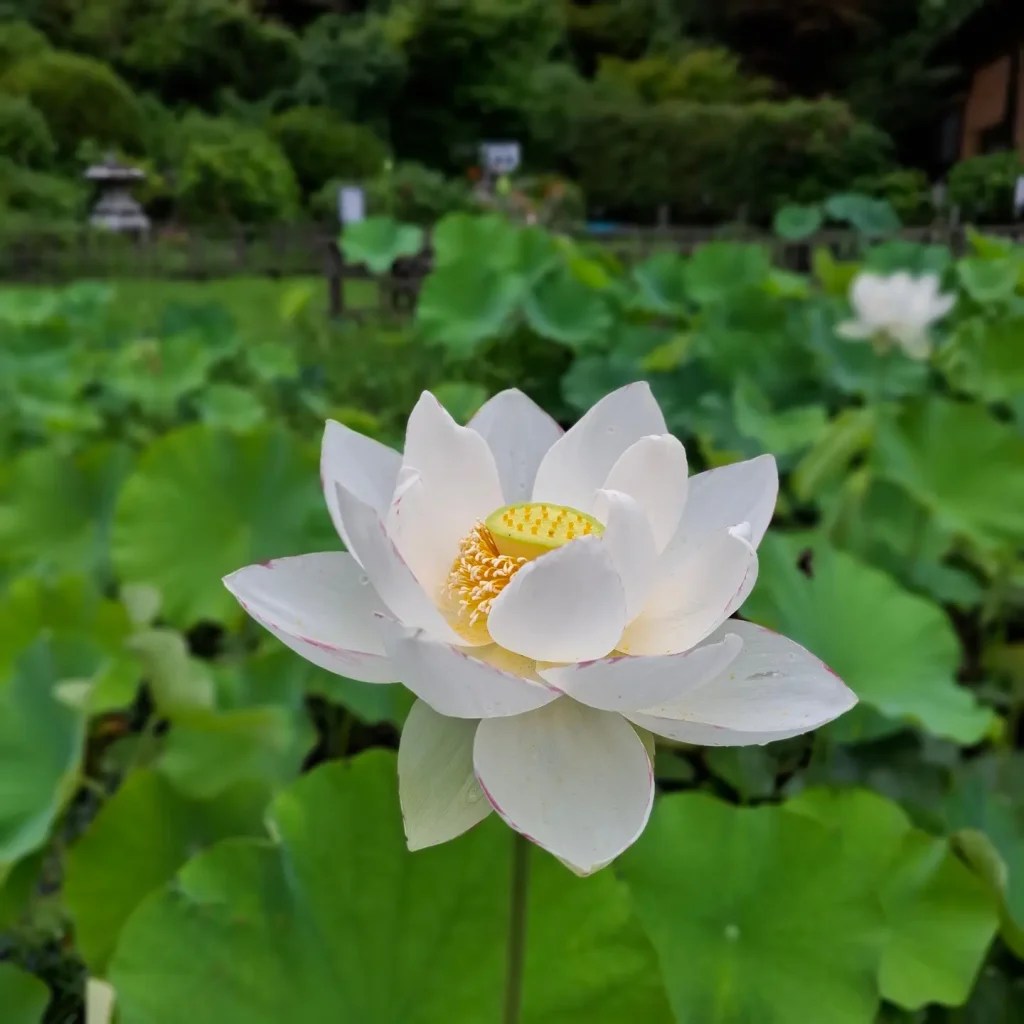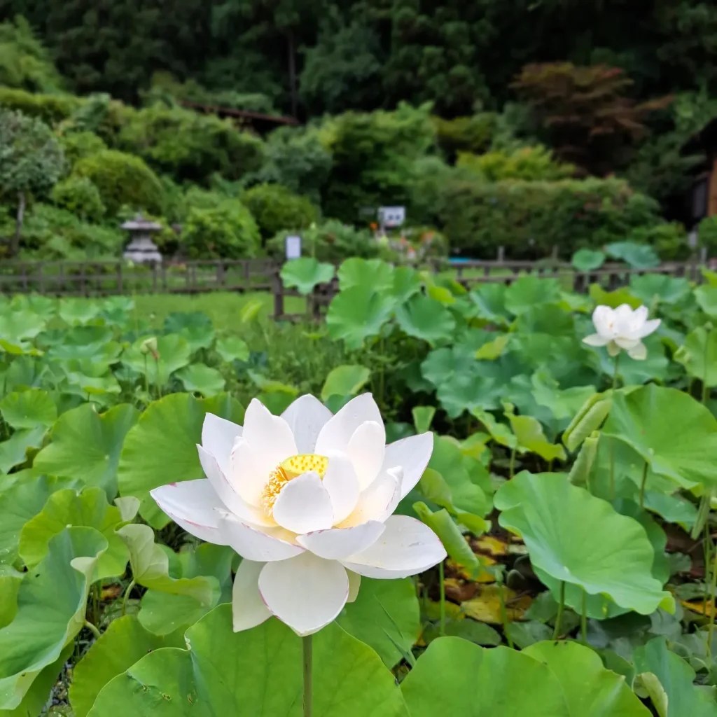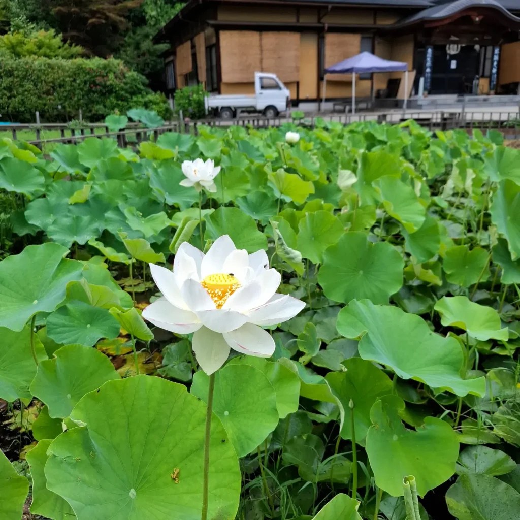 蓮咲く 日誌 2024.07.12 蓮咲く 今年も大輪の花を咲かせた大安禅寺の蓮。白さが美しく青々とした大きな蓮の葉との相性ピッタリです。 この蓮は松平家より寄進いただいたものと伝わっており言わば生きる文化財です。これから更に咲き誇る蓮の花。是非お寺にお越しの際は愛でてみて下さい。